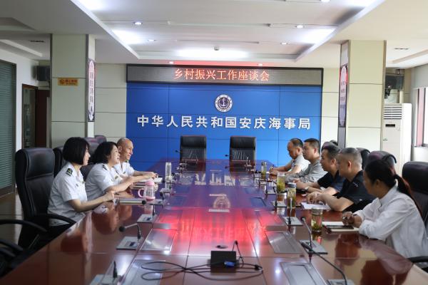 为进一步发挥帮扶单位作用,明确帮扶方向,推动乡村振兴工作取得新进展,5月22日,安庆海事局乡村振兴帮扶点——望江县九龙村“两委”负责同志、局选派驻村干部来安庆海事局开展乡村振兴工作交流座谈,周蔚伟政委、党工部、后勤管理中心相关同志参加。