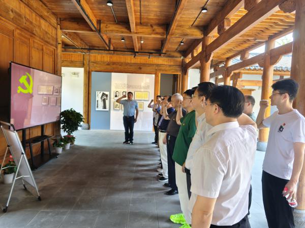 参观结束后,为上半年入党的党员集体过政治生日,机关党总支书记送上政治生日贺卡,全体党员面向鲜红的党旗,高举右拳,重温入党誓词。