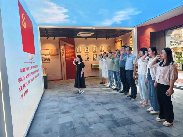 参观结束后,全体党员整齐列队,精神抖擞,在领誓人员的带领下,庄严肃穆面向党旗,高举右拳,重温入党誓词。