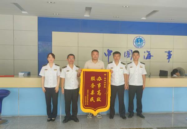 7月21日上午,安庆海事局政务中心迎来安庆某航运公司经理夏先生送来“办事高效 服务亲民”锦旗一面。原来该公司有一条拆解船舶“袁柏**”,7月14日来我局政务中心办理注销登记,政务中心窗口服务人员高效服务于7月16日完成所有证书注销。公司夏经理感慨道:“非常感谢你们热心服务,只在一个窗口交一次材料,第三天就通知我所有证书注销都完成了,效率真是翻天覆地,为我们争取了宝贵的经济效益!”