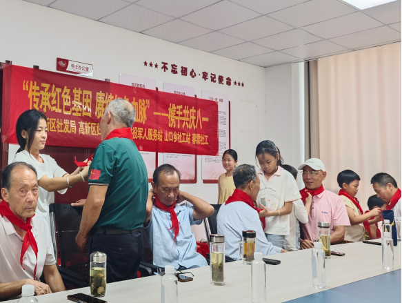 7月30日,安庆高新区社会事业发展局党支部组织开展“传承红色基因·赓续红色血脉”庆八一主题党日活动,以“老幼对话”形式串联红色教育与社会关怀。活动设置“三个一”特色环节:一场传承仪式——少先队员为老兵佩戴红领巾并行队礼致敬,完成红色精神代际传递;一堂军旅思政课——老兵分享军旅故事,展现“听党指挥、能打胜仗”的钢铁信念;一份双重关怀——为老兵和孩子们送上夏季清凉包,包含防暑药品、便携风扇等物资,又特邀医护人员提供血压、视力检测等健康义诊。