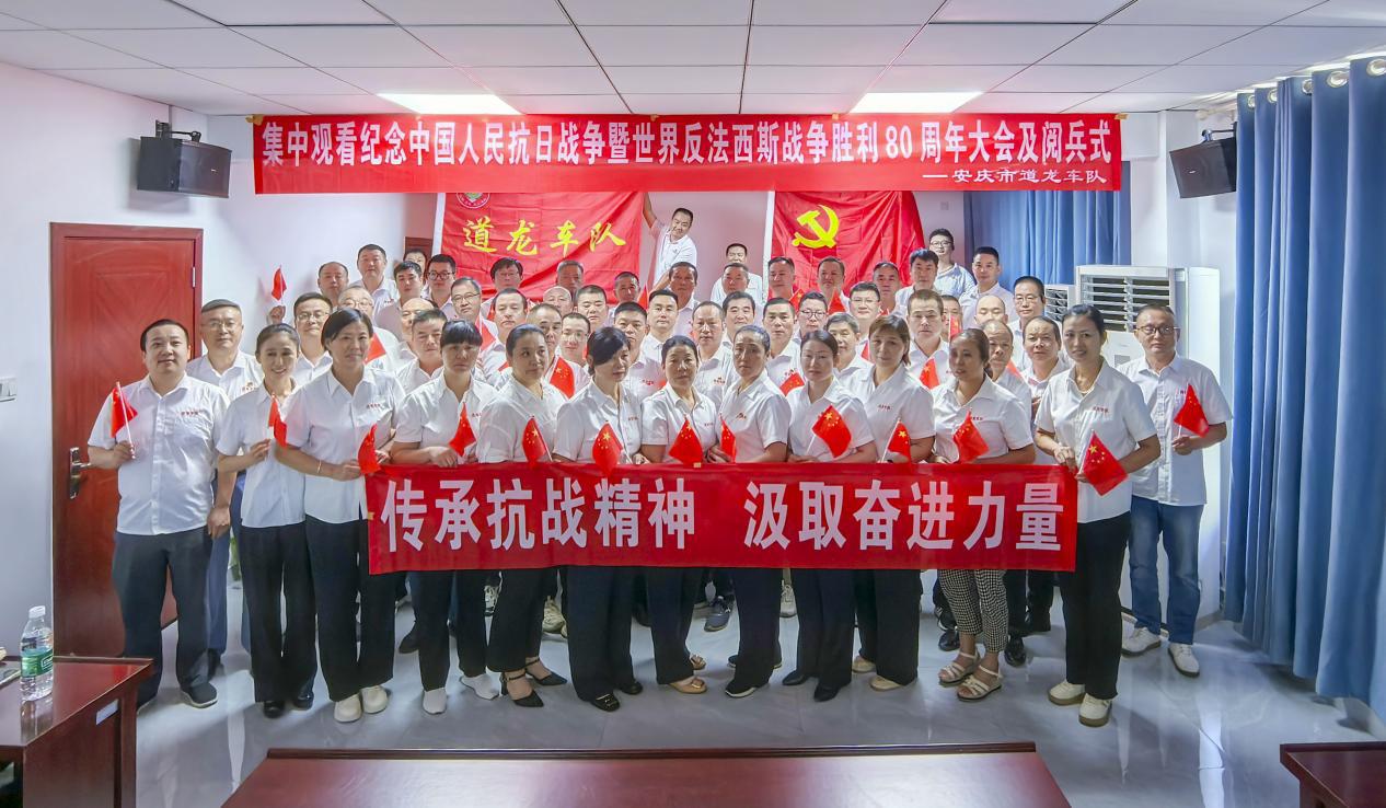 9月3日,纪念中国人民抗日战争暨世界反法西斯战争胜利80周年大会在北京隆重举行。安庆市交通运输行业党委组织道龙车队60余名队员集中观看大会直播,共同铭记光辉历史,汲取奋进力量。