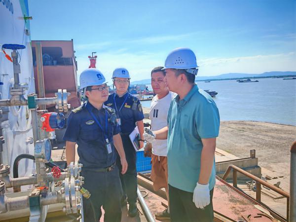 精准施策有深度,搭建产业升级“高架桥”。面对新能源船舶制造带来的技术挑战,安庆海事局提前介入,联合CCS、皖江及江淮船检局开展多方技术研讨,从源头严把安全与质量关。通过强化吨位复核、重要日期确认和船底外部检查等关键环节监管,全力保障船舶建造合规、试航安全,助力贵池打造高端绿色造船基地。