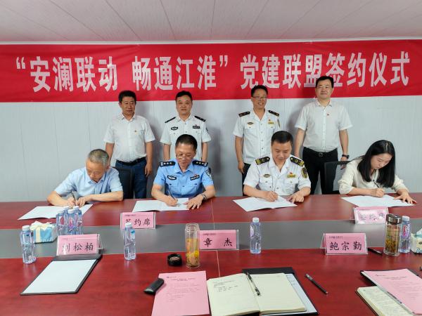 党建引领,打造干支联动“示范区”:打造“125”引江济淮干支联动示范段。围绕江淮运河,与合肥、淮南、安庆、铜陵等市交通执法支队以及船闸管理单位等部门建立联合执法合作机制,以一个党建为引领,锚定目标和价值2个定位,打造智慧监管、科学调度、有机联动、绿色长江、诚信服务等五个示范段。在“江淮沟通、干支联动、保障安全、促进发展”的原则下,建立“引江济淮”枞阳小港航道船舶过闸联合调度党建联盟。建立健全“信用+过闸”工作机制。联合安庆市交通运输局和船闸管理单位安徽省引江济淮集团有限公司,推动在枞阳船闸试点开展“信用+过闸管理”工作机制。优化江淮运河监管模式。发挥党员先锋模范作用,派驻海事服务工作专班驻守引江济淮枞阳船闸,实现全方位、全流程监控,着重提高信息化在引江济淮枞阳小港航道监管工作中的作用。