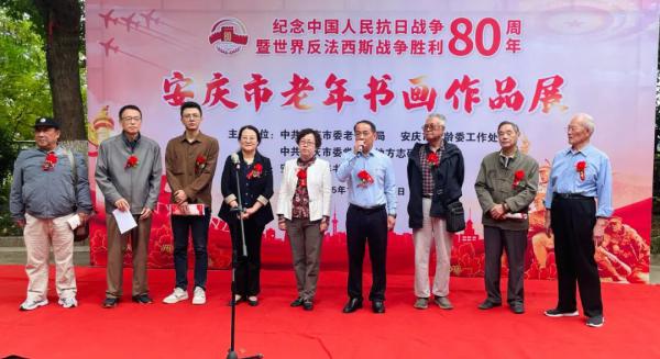 10月15日,由中共安庆市委老干部局、安庆市老龄委员会工作处、中共安庆市委党史和地方志研究室主办,市老年书画协会承办的纪念中国人民抗日战争暨世界反法西斯战争胜利八十周年安庆市老年书画作品展在市美术馆举办开幕式。市委组织部副部长、老干部局局长徐舒媛,市委党史和地方志研究室主任张吉全,市委老干部局副局长华文红出席活动。徐舒媛宣布书画展开幕,张吉全主持开幕式,华文红发表致辞。