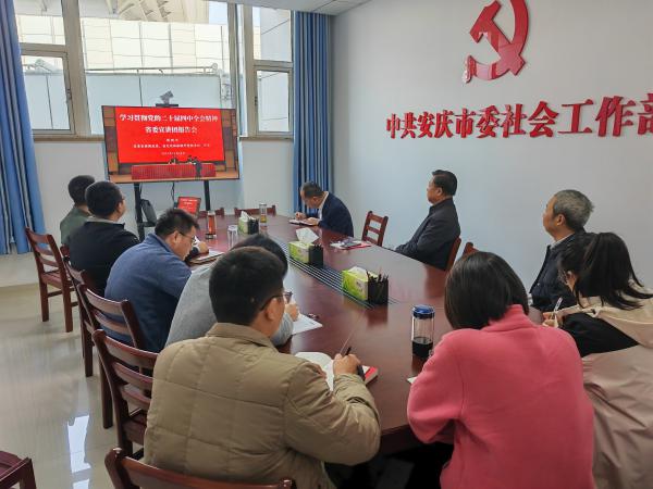 会议要求,学习贯彻党的二十届四中全会精神作为当前和今后一个时期的一项重大政治任务,要原原本本学、融会贯通学、联系实际学,吃透精神实质,把握实践要求,推动全会精神入脑入心。要精心组织,统筹安排,线上线下同步广泛开展党的二十届四中全会精神学习宣传,在全市社会工作系统迅速掀起学习热潮。要坚持学思用贯通、知信行统一,认真落实好全会关于“走中国特色社会主义社会治理之路”“完善社会治理体系”等部署,坚持和发展新时代“枫桥经验”,推广运用好“六尺巷工作法”,重点做好新兴领域党建、社会治理和凝聚服务群众工作,将学习成果转化为推动安庆社会工作高质量发展实效,为建设现代化美好安庆贡献力量。