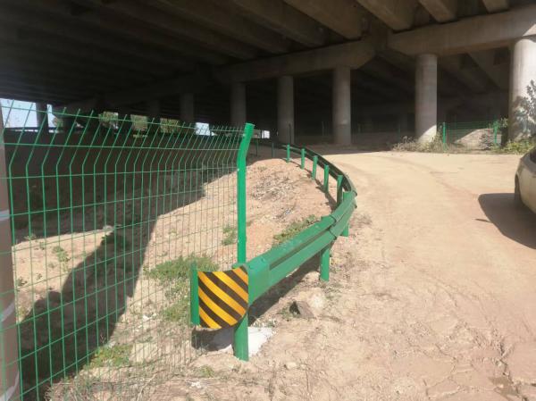 桥下道路两侧波形梁护栏和隔离栅全部安设完成,不仅为公路桥梁安全运行筑牢防护网,有效巩固整治成果和?;す酚玫胤段В参嗣袢褐诔鲂写丛旄影踩?、整洁、有序的交通环境,提升了城市边界区市容市貌。