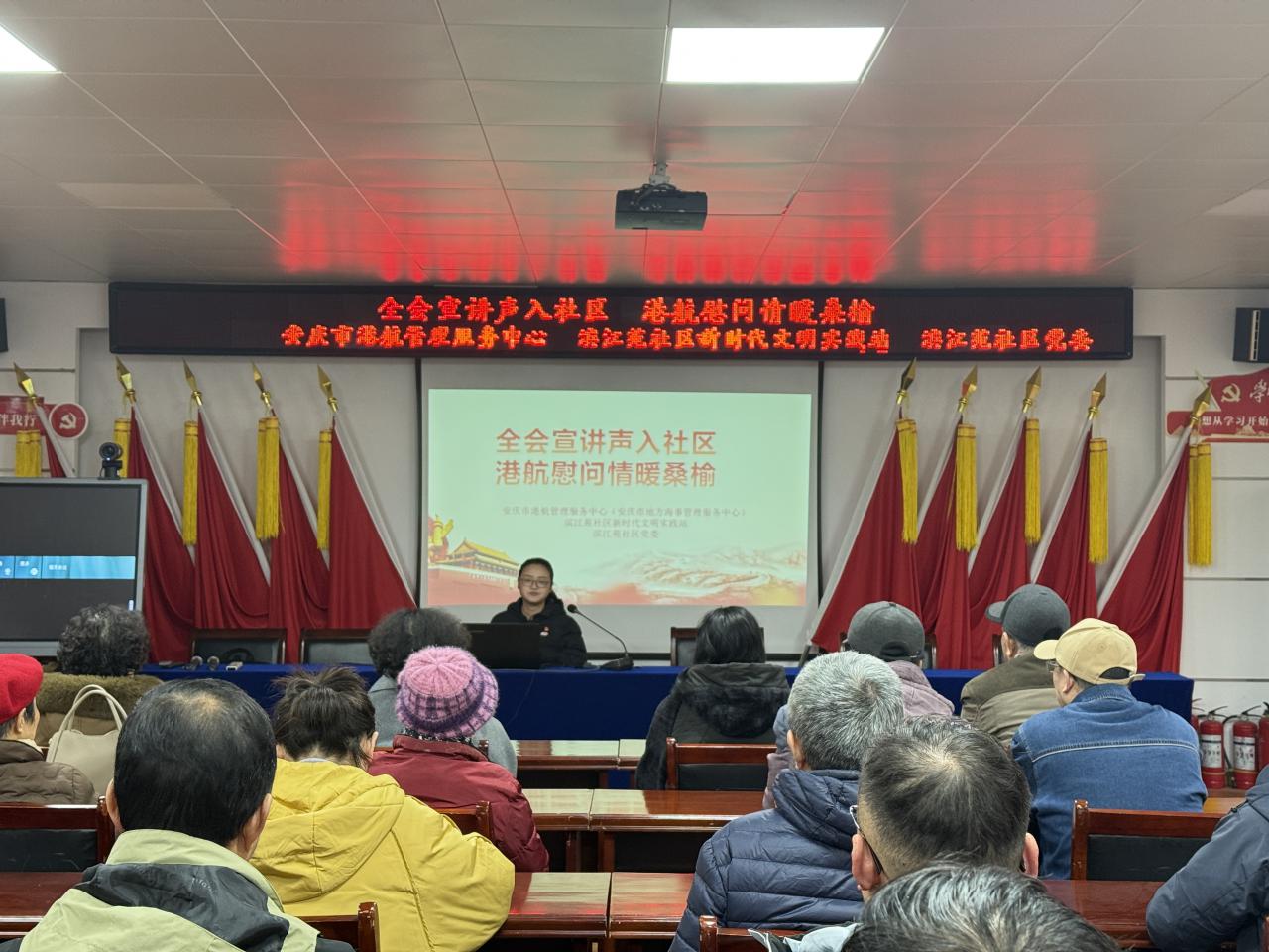 近日,为推动党的二十届四中全会精神在基层落地生根,市港航中心走进滨江苑社区开展“全会宣讲声入社区,港航慰问情暖桑榆”主题活动。本次活动由市港航中心党委委员、副主任韩璟带队,中心10余名党员志愿者参加,以“宣讲+慰问”的形式,将党的创新理论与组织关怀精准送达群众心坎,让这个冬日充满别样温暖。